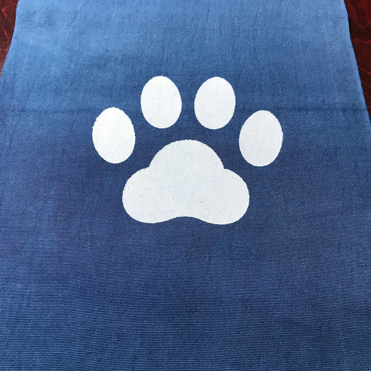 狸吉オリジナルの六尺褌に藍染を行い、その後肉球をプリント致しました。