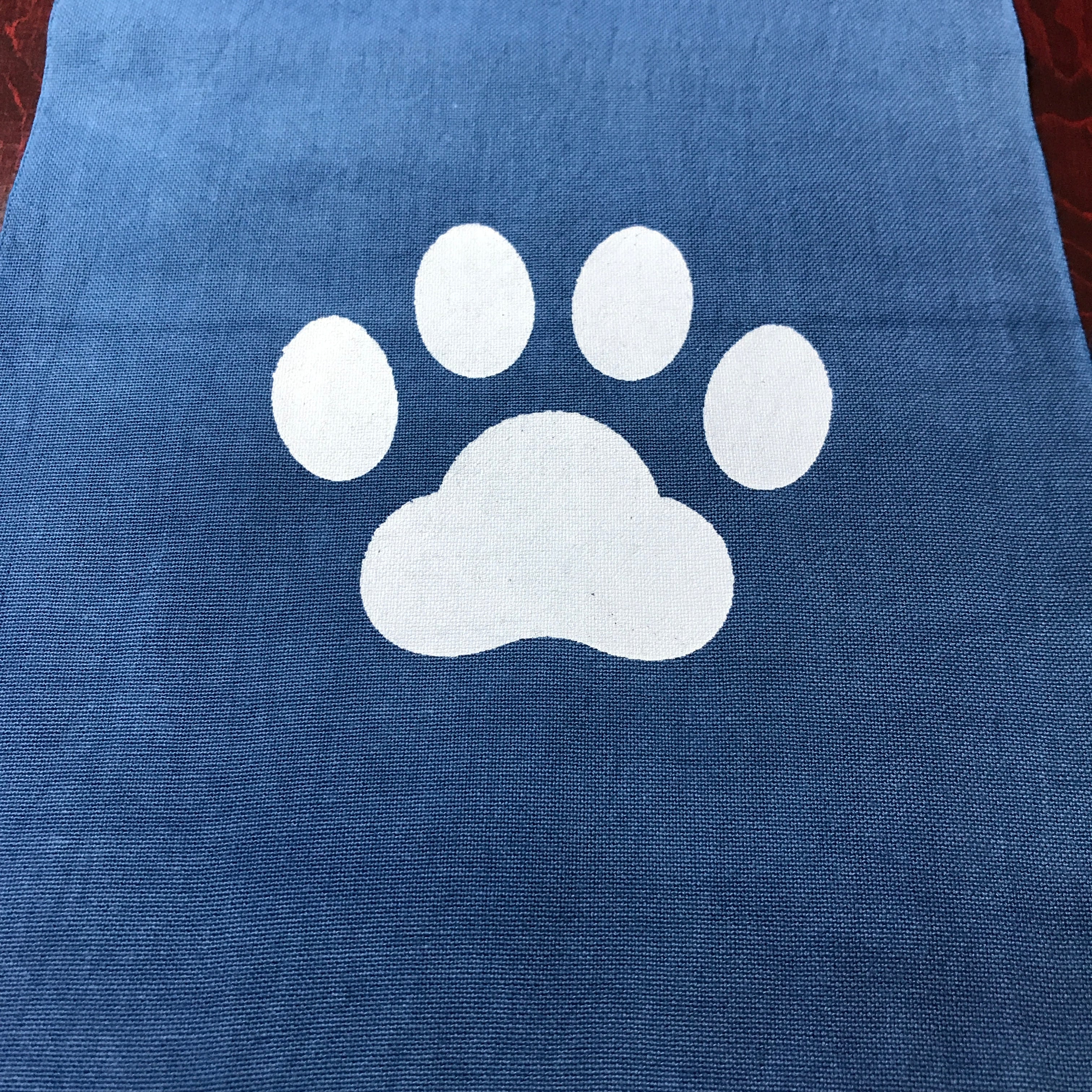狸吉オリジナルの六尺褌に藍染を行い、その後肉球をプリント致しました。